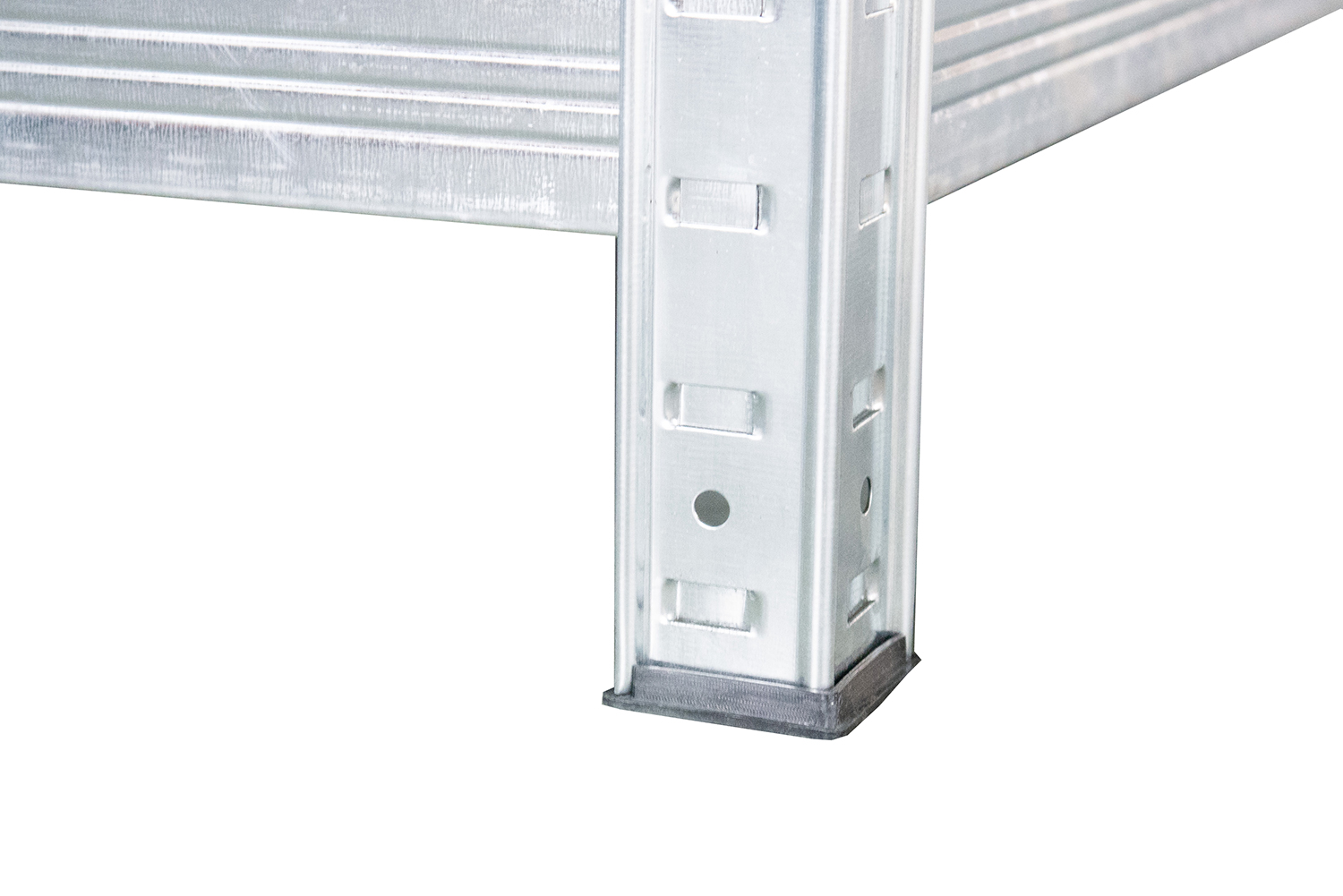 Solidny, mocny, stabilny regał wykonany został z galwanizowanej (ocynkowanej) stali, dzięki czemu jest nie tylko wytrzymały, ale także odporny na niekorzystne warunki jakie mogą występować w pomieszczeniach magazynowych, takie jak np. wilgoć.