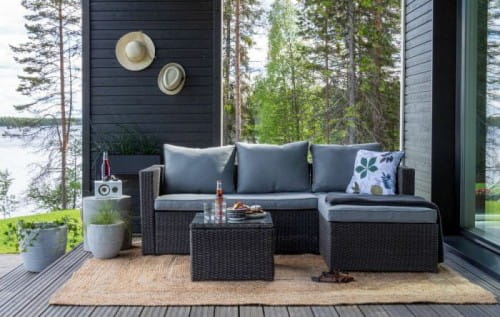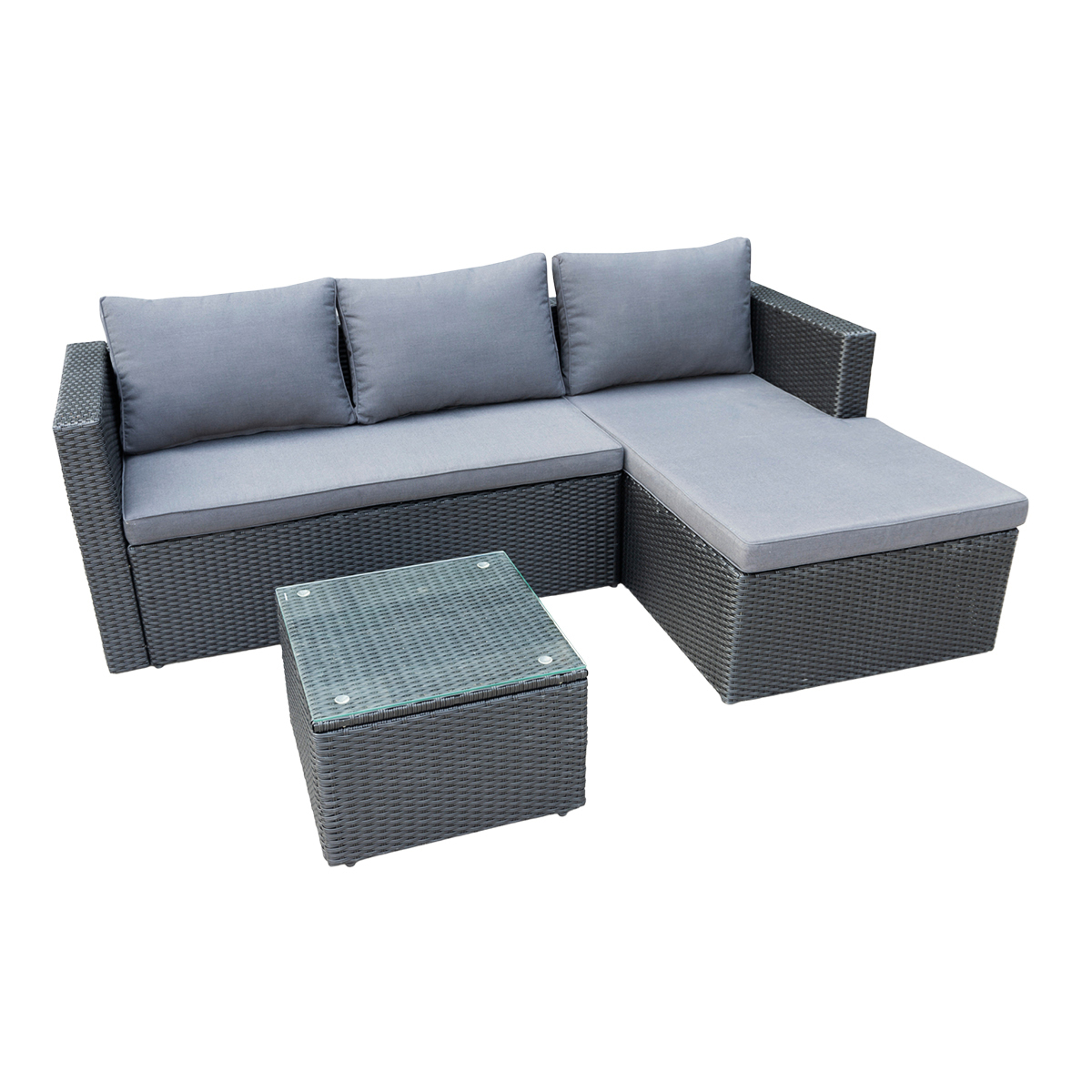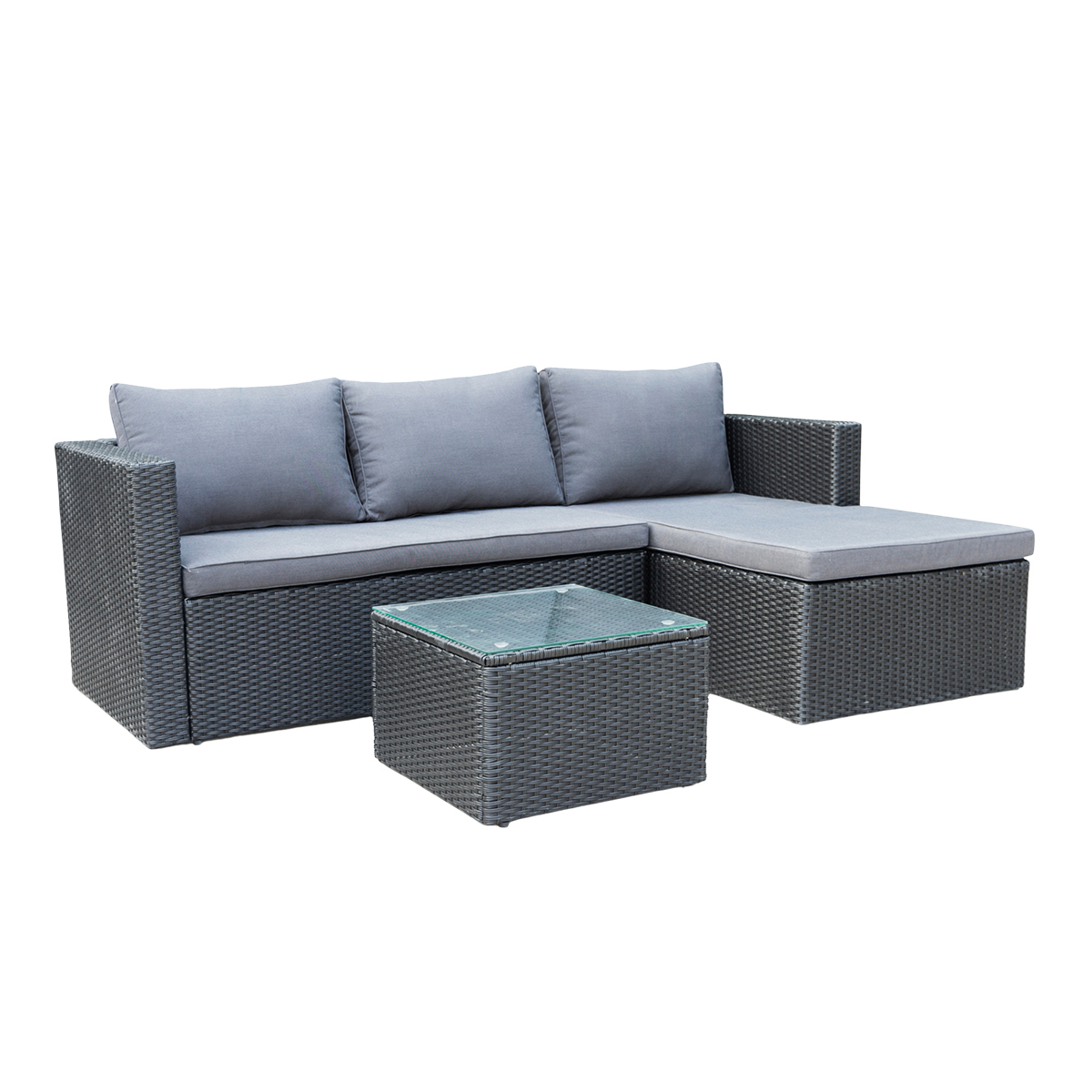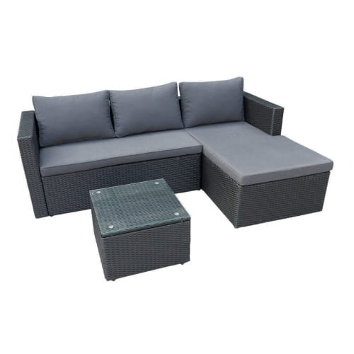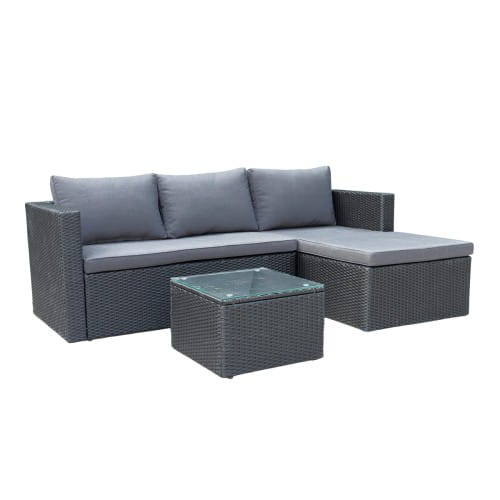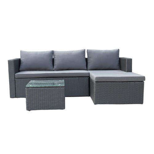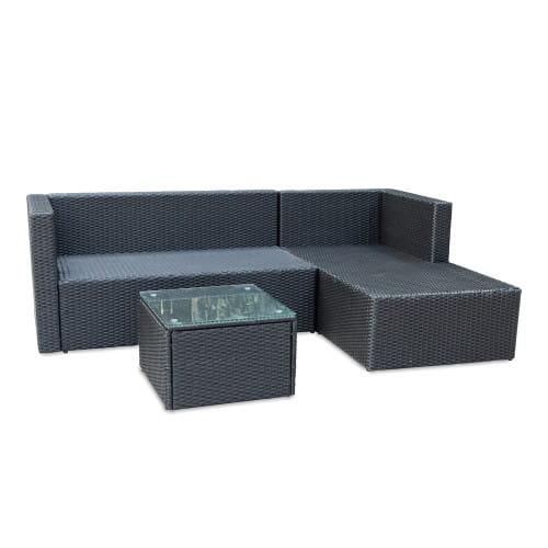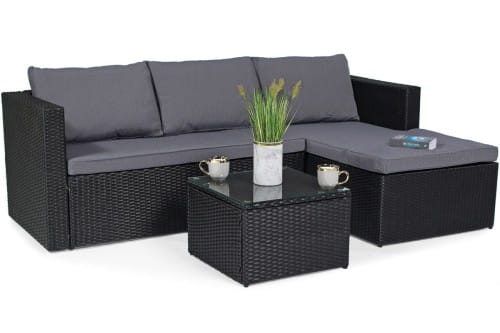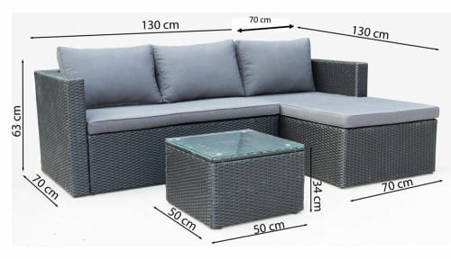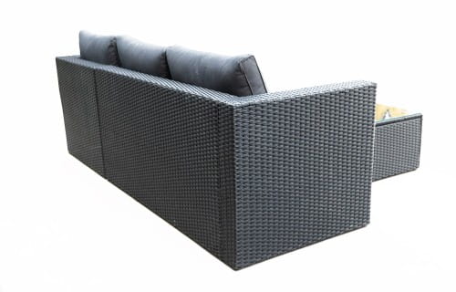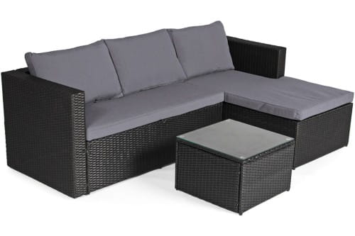 Wykonany z najwyżej jakości materiałów spełni oczekiwania nawet najbardziej wymagających klientów. Stalowy stelaż malowany proszkowo ręcznie opleciony techno-rattanem stanowi solidną konstrukcję odporną na warunki atmosferyczną oraz bardzo stabilną. Wygodny materac oraz poduszki w kolorze czarnym zapewniają wysoki komfort i wygodę. Stolik kawowy świetnie dopełnia zestaw. Blat stolika wykonany ze szkła hartowanego gwarantuje jego bezpieczne użytkowanie, jak i łatwość w utrzymaniu czystości.