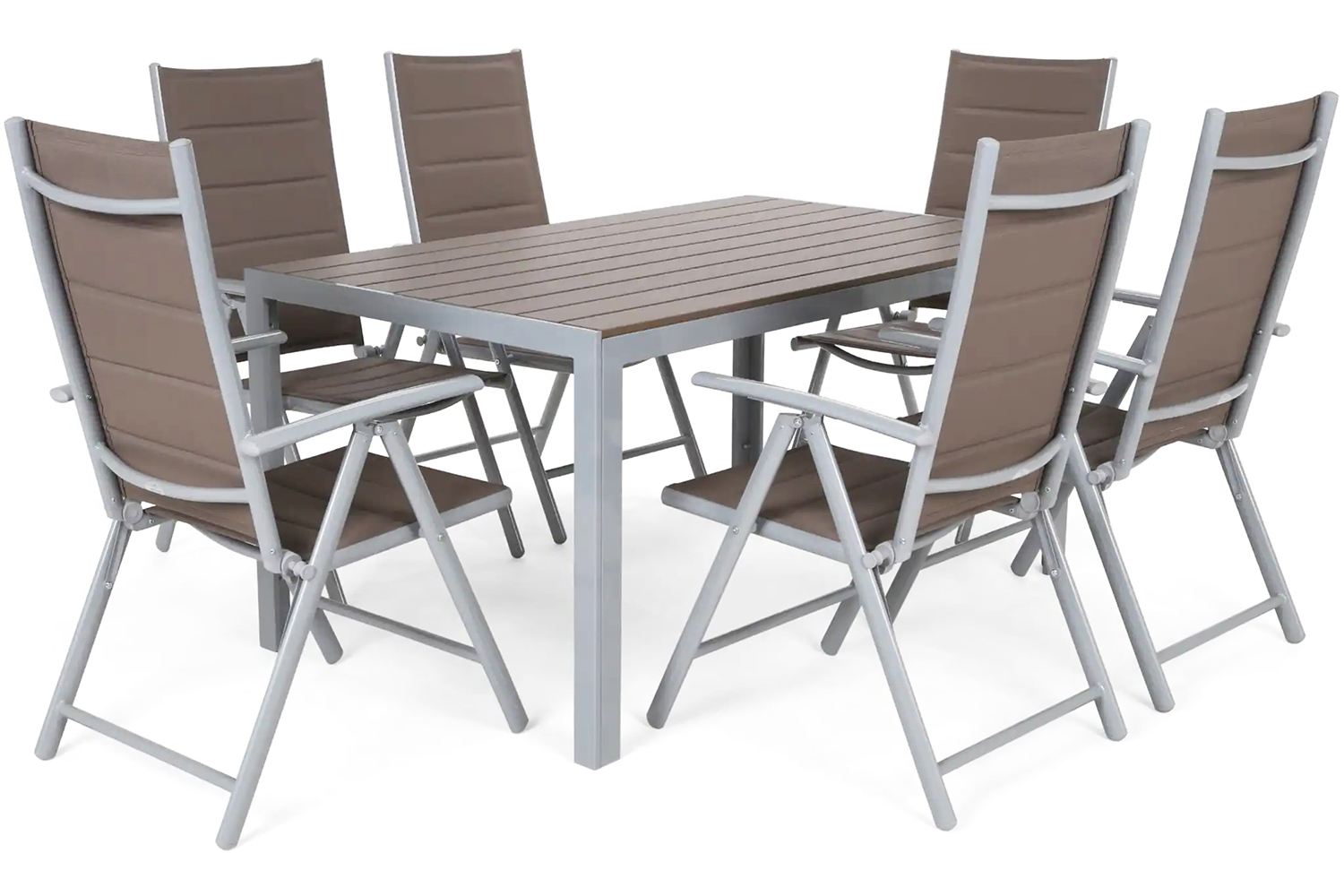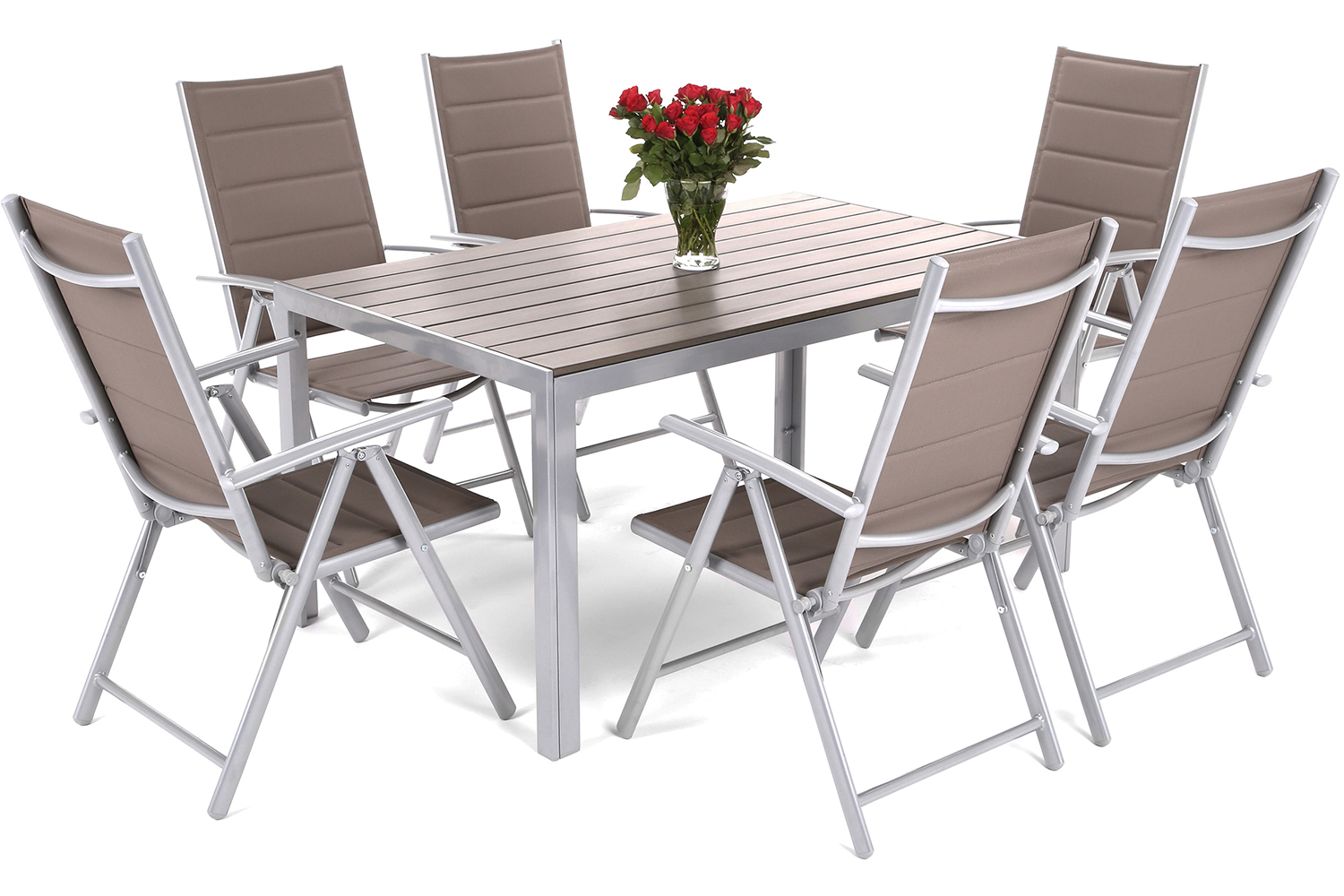 Zestaw Mebli Ogrodowych Luxury Beżowo-Srebrny (stół + 6 krzeseł)